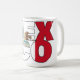 A caneca do café mostra o México com letras grandes empilhadas que têm a bandeira nacional como preenchida.