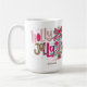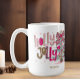 Traga uma pop de diversão e faísca para suas manhãs de Natal com essa caneca de Natal Holly Jolly alegre! Decorada com letras coloridas, cor-de-rosa e douradas, uma árvore festiva de férias e um arco, esta caneca é perfeita para adicionar personalidade ao seu café, chá ou cacau quente. Personalize-o com um nome para torná-lo especial. Um belo presente de Natal para crianças, adolescentes ou qualquer um que ame designs de Natal brilhantes e modernos.