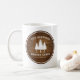 Na moda, canecas de café com tema rústico do país, com seu nome e "Cabina da família", Ranch, Cottage ou outro texto, juntamente com sua data e localização estabelecidas, se desejar. Este design personalizado, único, apresenta texto no estilo do país rústico com uma silhueta branca de pinheiros em um impressão redondo de planadores de madeira. Para ver mais designs como esta, sinta-se à vontade para visitar a minha loja aqui em "Zazzle.com/Rustic_Charm". Obrigados.