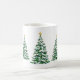 Uma caneca de café cerâmica festiva mostrada com um design de impressão de árvores de Natal festivas. Personalize este item ou comprar como está.