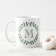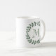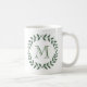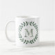 Adicione um toque personalizado elegante a toda a bebida com esta caneca de café monogrammed. A grinalda moderna do louro das características de design sae e inicial à moda da tipografia. O monograma é no centro simples personalizar. Faz uma dama de honra elegante, uns padrinhos de casamento, e uma ideia nupcial do presente da lembrança do partido e felicita as hortaliças chiques do casamento.