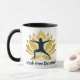 Esta caneca de café serena apresenta um yogi realizando asanas graciosamente, simbolizando paz, equilíbrio e calma interior. O slogan "Pausa da Rotina" encoraja os espectadores a encontrar tranquilidade através da atenção plena e do movimento.