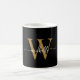 Moderno, Feminino, Minimalista, Elegante Monograma Preto e Dourado Inicial Nome Feminino Assinatura Personalizada Caneca de Café. Este design minimalista de cor lisa apresenta seu primeiro nome em uma linda tipografia de letra manuscrita com floreios (ou caligrafia), modelo de monograma inicial, fácil de personalizar. Ótimo presente feminino e elegante para inauguração, também para aniversário, dia das mães, festa de 16 anos, casamento, chá de noiva, chá de bebê, festa de formatura e é para a garota que ama coisas minimalistas e estilosas.