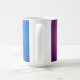 Caneca artística com um retrato feminino em tons de cinza rodeado por tons sonhadores de aurora rosa, azul e violeta, simbolizando calma, criatividade e luz.