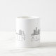 Esta caneca apresenta uma ilustração estilizada do horizonte único da cidade com seu nome embaixo.