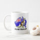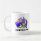 Austrália é o continente o menor; entre o South Pacific e o Oceano Índico. Um canguru é sobrepor no mapa enchido bandeira de Austrália.
