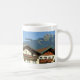 Fotografia de duas típicas casas austríacas tradicionais com uma montanha alta no fundo.