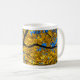 Folhas amarelas e ramos pretos de uma árvore mapeada ao fundo do céu azul de outubro. Ouro outono. Reprodução de cores amarela e azul
