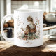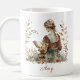 Embarque a beleza serena do outono com esta caneca encantadora, apresentando uma ilustração cativa de aquarela de uma mulher sentada num campo cercado por delicadas folhas do outono. Perdida nas páginas de seu livro, ela é a foto da tranquilidade. Os castanhos macios, laranjas e verdes trazem um charme de vintage, fazer esta caneca uma mistura perfeita de calor e elegância. Esta caneca pode ser personalizada com um nome, acrescentando um toque único que a torna um presente ideal para si ou para um ente querido.