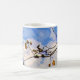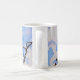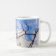 Os ramos pretos de Stark destacam-se contra a folhagem amarela do outono e um céu azul com formações de nuvens interessantes em um padrão de abstrato nesta fina caneca de arte.