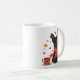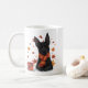 Cozy fall vibes! This cute black dog in a plaid scarf with autumn leaves makes the perfect seasonal mug for coffee or cocoa.