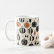 Esta caneca de na moda apresenta um moderno design de abóboras em várias formas e tamanhos, perfeito para celebrar a temporada de outono.