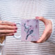 Caneca De Café Aves e Florais Rosa em Aquarela