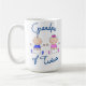 Uma caneca de café bonita com "Avô dos Gêmeos" em um menino e menina azul e fofo, de roupas azuis e cor-de-rosa.