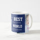 A melhor caneca de dia de os pais feliz do pai modelo de colagem personalizável em azul e branco. Um presente personalizado de fotografia para pai.