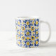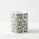 💛 Coffee Mug com Azulejos incríveis. Azulejo floral impressionante com azul e amarelo, ao estilo do espanhol Azulejo, motins tradicionais, cores e padrões ousados, inspirado pelo folclore,