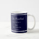 Café Mugs Chic Blue e White com o nome de seu lago, o nome de sua família e as coordenadas do mapa. Lakehouse moderno, script de pincel, coordenadas de mapa, latitude de longitude,