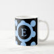 Personalize esta caneca de café com um nome de um lado e inicial - monograma do outro. Projetado em bolinhas pretas e azuis.