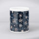Este azul escuro com flocos de neve com caneca padronizada é perfeito para uma noite confortável perto do fogo. As canecas são uma maneira fácil de mudar a sua decoração sazonal. Imagem assistida por IA adquirida com uso comercial. Trabalho de arte: FreyasDigitalCrafts