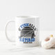 Uma caneca de aposentadoria com o tema "O'Fishally Reformada". Personalize com seu ano de aposentadoria. O presente perfeito para o pescador aposentado na sua vida. Disponível em várias cores; mostrado com sotaques azuis.