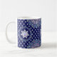 Floco de neve com o desenho de uma janela de vidro manchado de uma velha igreja europeia: uma janela rosa, com toques de uma grande variedade de cores, incluindo tons de azul, sobre um fundo azul marinho. Inlay de rochas azuis-claras (desenhada). Para um padrão de inverno antigo. Este motivo também está disponível em vermelho cardeal em minhas coleções de "rosa vermelho cardeal".