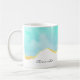 Uma caneca com design de verão sereno. Turquesa / aqua imagem aqua verde aquosa com uma borda de ouro ondulada. Elegante e adorável.