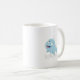 Uma baleia azul saltando da água. Personagem de desenho animado.