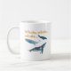 Várias baleias amigáveis para amantes de os animais. Entre eles, você pode encontrar a baleia azul, a baleia cinza e a baleia-jubarte. A parte do texto representa um trocadilho "Bem, bem, bem".