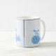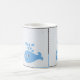 Uma baleia azul e branca com saliências destaca esta adorável caneca de café.