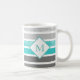 Caneca De Café Bandas Brancas de Cinzas Turquesas