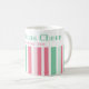 Cores: rosa e verde-menta. Uma combinação de excelentes para o Natal. Estas listras retro vivas são muito divertidas nesta caneca de café de férias. Nosso pequeno texto "Natal Cheer" é editável. Certifique-se de alterar os nomes de exemplo e a data para serem os que você deseja.