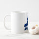 Mug com a bandeira de Arlington, Texas. Uma bandeira branca com uma letra A azul e vermelha e uma estrela prateada no centro