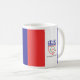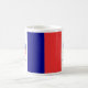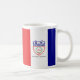 Mug com pavilhão da cidade de Cleveland, Ohio; bandeira com três bandas verticais de vermelho, branco e azul com selo da cidade no centro