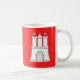 Mug com bandeira de Hamburgo, bandeira vermelha com ilustração de um castelo branco com três torres