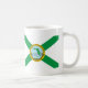 Mug com uma design com a bandeira de Hollywood, Flórida. Uma bandeira branca com uma Rua verde. A cruz de Andrew e um selo de cidade no centro