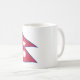A bandeira nepalesa é uma combinação de dois pennons com uma beira e com um sol e uma lua do crescente. As cores usadas na bandeira são azuis, vermelho, branco. A proporção da bandeira nepalesa é 1:1.21901033. A bandeira de Nepal foi adotada em 1743. A última mudança ao design nepalês atual da bandeira era em 1962.