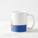 Mug com uma design com a bandeira de Orlando, Flórida. Uma bandeira azul e branca com o lago fonte de Eola no centro da design da Bandeira por Orlando e Tim Eggert. Fonte: https://www.orlando.gov/Our-Government/News-and-Information/City-Official-Assets