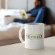 O nome da gravidade a negrito de todos os bonés é enquadrado por um bar metálico de ouro horizontal numa caneca branca. O texto preto adiciona contraste, criando um layout refinado com uma busca nítida e limpa para uso diário ou exibição de desktop.