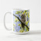 Em um dia brilhante de primavera, uma coruja barrada empoleirada e olhando em direção ao fotógrafo.