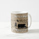 Esta caneca de café apresenta um design rústico de um acampamento com um fundo de madeira antigo. Mostra um pequeno e feliz RV de Classe C em um feliz acampamento com um pequeno e feliz fogo e árvores e estrelas e montanhas, tudo que você poderia querer em um acampamento. Você pode personalizá-lo colocando seu nome no topo. Na parte inferior estão as palavras "Happy Campers". A caneca é lavadora de louça e micro-ondas segura. A design é repetida em ambos os lados da caneca para que possa ler se utiliza a mão esquerda ou direita para segurar a caneca.