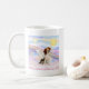 Um Beagle testa suas asas entre as nuvens desfocadas do céu antes que elas sejam livres para entrar na Ponte do Arco-íris onde anjos e amigos esperam.l