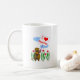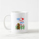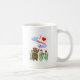 Uma caneca de café com a minha trabalho de arte de um castor segurando uma placa que diz "Eu coração Manitoba".