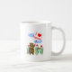 Xícara de café com meu design de um lindo personagem de castor segurando um cartaz que diz "Eu coração Nunavut" com um coração vermelho e flores.