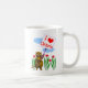 Uma caneca de café com a minha design de um personagem de castor com flores atrás dele, segurando uma placa que diz "Eu coração Ontário".