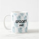 O fantasma do bebê azul Halloween assusta caneca de café fofa. Esta caneca apresenta um fantasma azul bebê com as palavras "SPOOKY fofo" em preto.