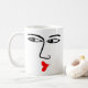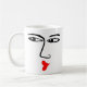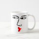 Uma caneca com um rosto robusto e beijo. O rosto se repete em ambos os lados.