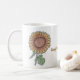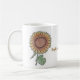 Desenho colorido de lápis esboçado em preto. Girassóis podem ser uma agradável surpresa. Um ano acreditamos que nos deram um presente de um esquilo que jogou uma semente no nosso quintal. Acabamos com um lindo girassol grande para curtir. O esquilo comeu também, então talvez ele tenha feito de propósito. Que esta design nos ajude a apreciar as belas surpresas que acontecem na vida, enquanto você pica nesta caneca.