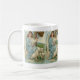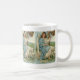 Vintage art com a pintura de um belo anjo em vestido azul e branco e tocando um ouro.