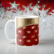 Este design tem poinsettias em forma de estrela, em vermelho, cobertas por fita estéril de cor dourada. Toque no Natal no início do dia com seu café da manhã ou reflita nas férias com seu cacau da noite. Esta xícara está pronta para qualquer bebida festiva durante o inverno e ainda parece adorável além. As cores e os padrões dão ao copo uma ligeira sensação de vintagem. A cor dourada não contém brilho ou folha - é um efeito de cor simulado.