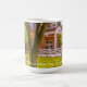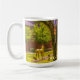 A coleção de lembranças de viagem ZoeSPEAK inclui algumas fotografias originais de centros de boas-vindas nos estados dos EUA que visitámos. A vista ensolarada sobre esta Mug mostra o estado dos EUA de Kentucky e seu Centro de Boas-vindas, com uma estátua ouro de um cavalo, e cercas brancas clássicas levando ao Centro sob as árvores.
